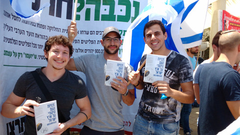 Distribution of the book at a rally May 14/18 - Photo by Eytan Meir
